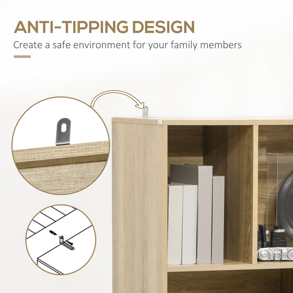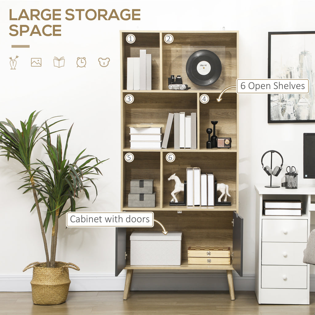 With its two-tone colour design, this is a stylish addition for all home and office spaces. Made from sturdy particle board, suitable for everyday use, with anti-tipping straps for safety. Features six open shelves for your books and more, with two bottom drawers to keeps things discreetly stored. Complete with wooden legs for support.