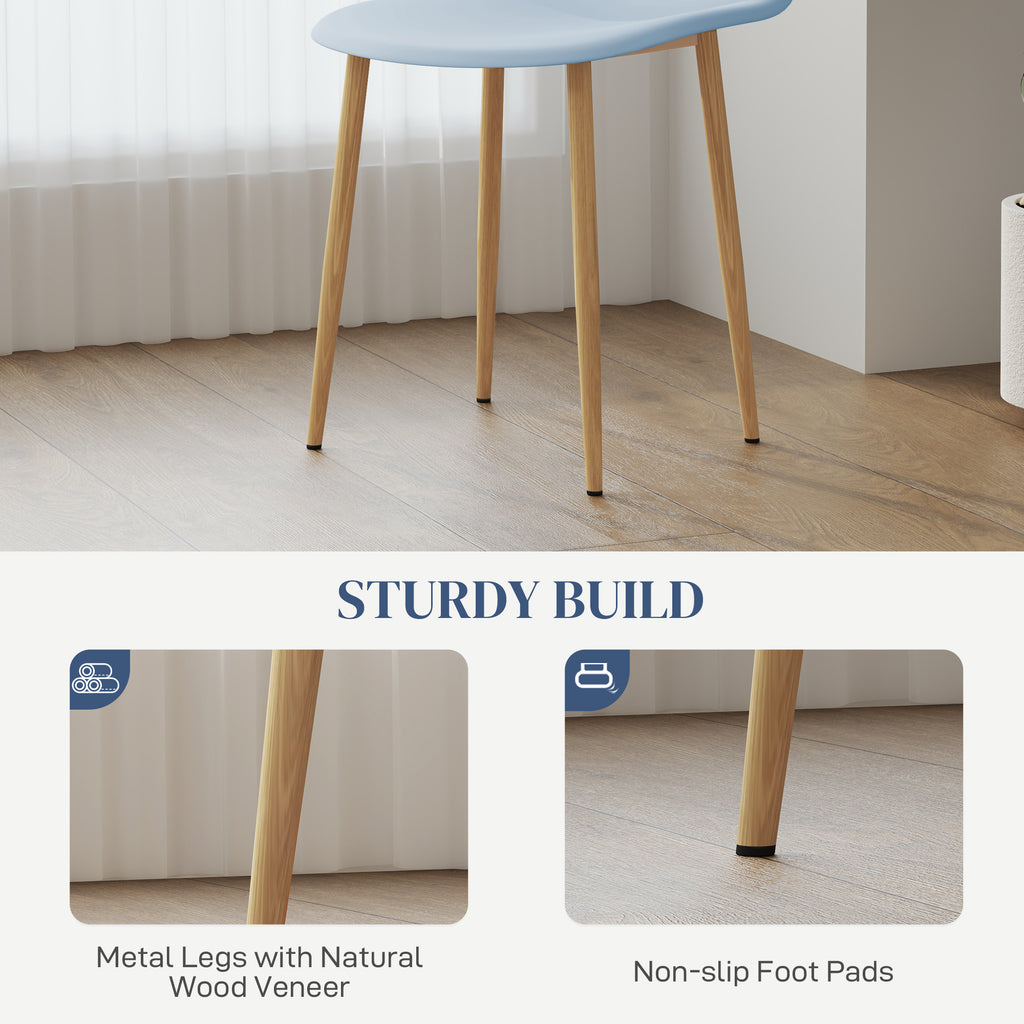 Modern Dining Chairs Set of 4, Kitchen Chairs with Backrest and Steel Legs for Dining Room, Living Room, Light Blue