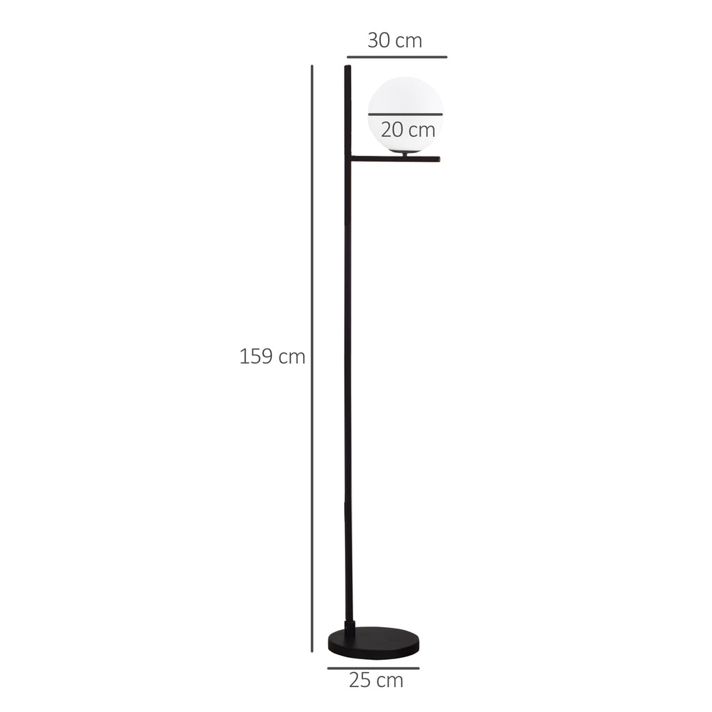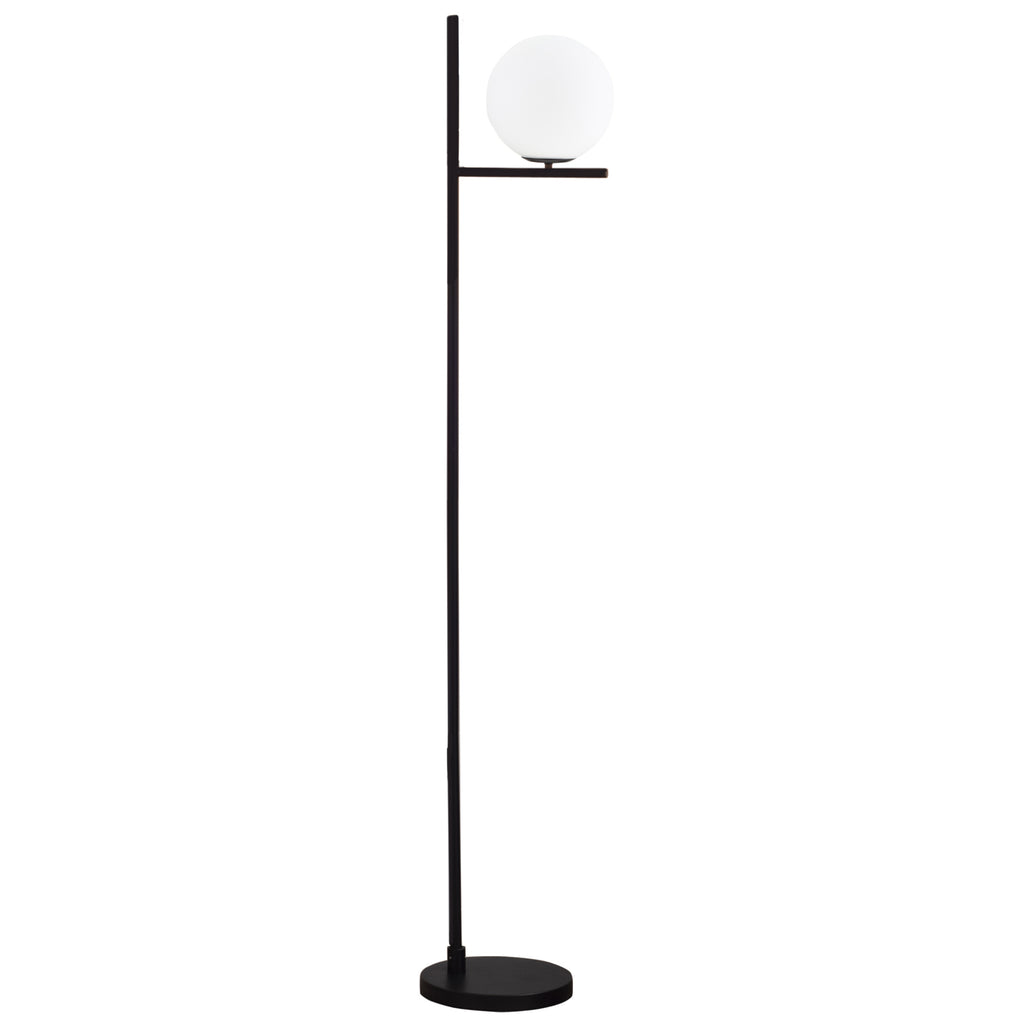 Let your lighting do the talking with this floor lamp Design fuses a tall, slimline frame, with a glass ball shade fixed on a side arm at the top. The opaque finish of the shade lets out a gentle glow, so it softly illuminates your space - perfect for when you want to create a calm atmosphere whilst the standard lamp is effectively lit up. The frame, made from steel is tough, with a round base for balance. The corner lamp is finished with a foot switch to turn on and off easily.