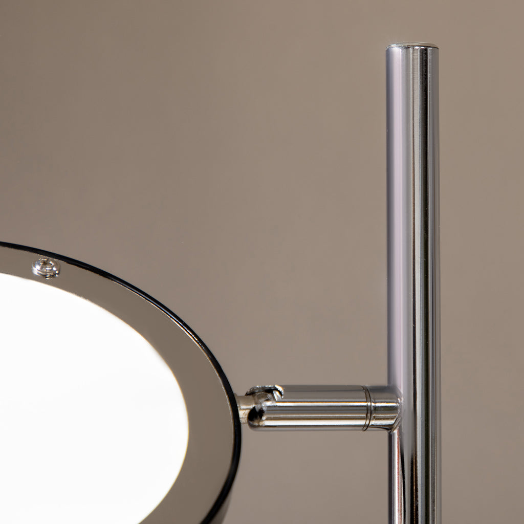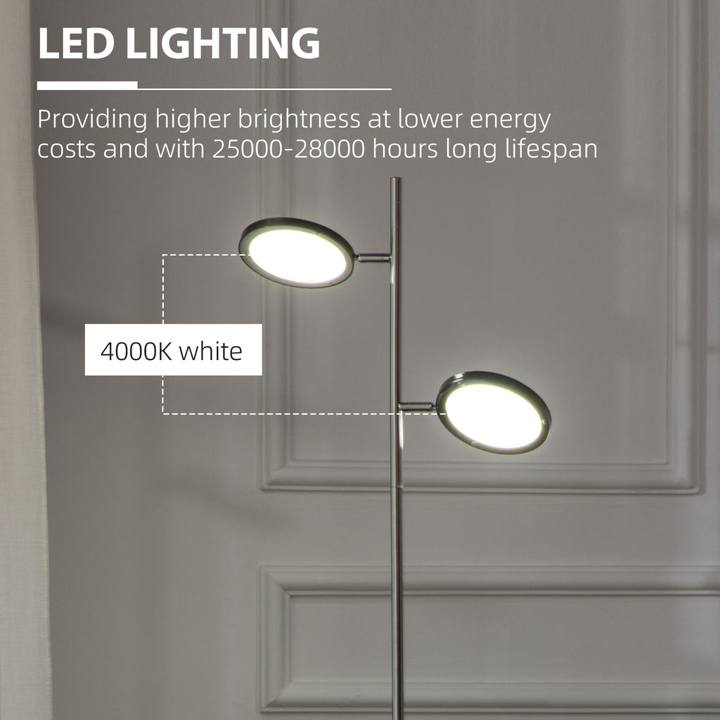 As a bedroom lamp, a living room lamp, or for wherever you want in the home, this piece is suitable for anywhere you want. A tall and slimline metal frame for a sturdy structure, fitted with two ring shaped LED lights. Both shades can be moved different positions within a 180° range to direct light to a spot you want. Complete with a handy footswitch to turn it on and off easily.