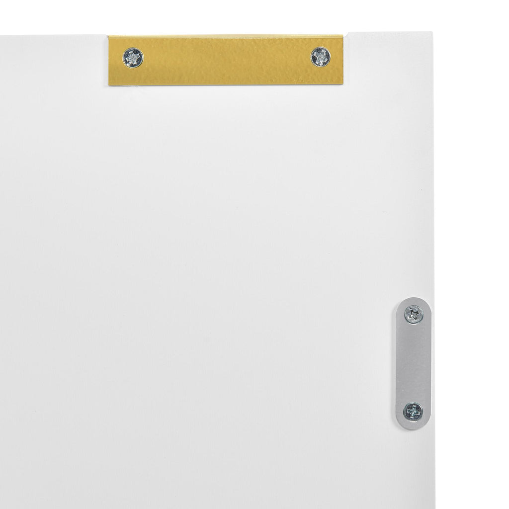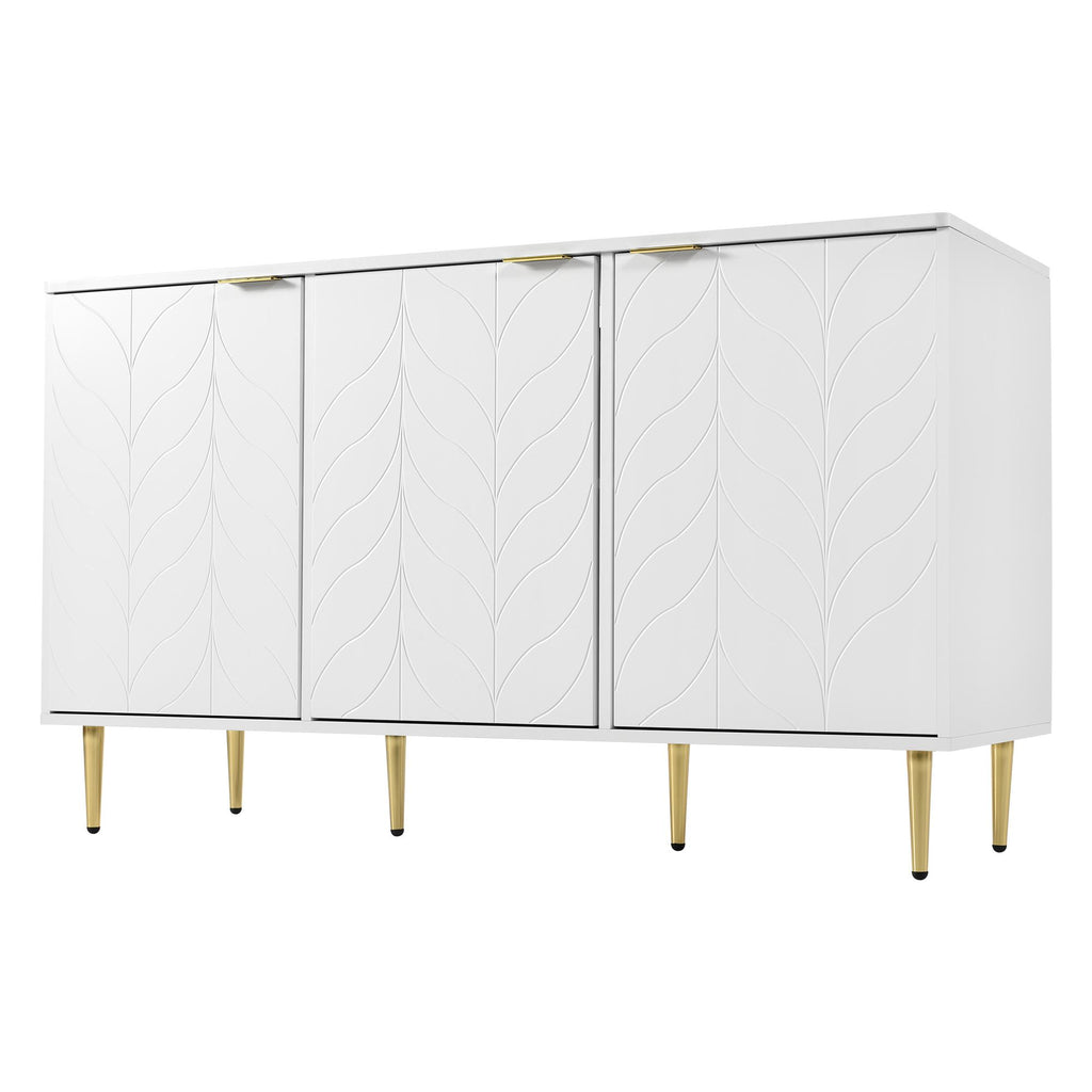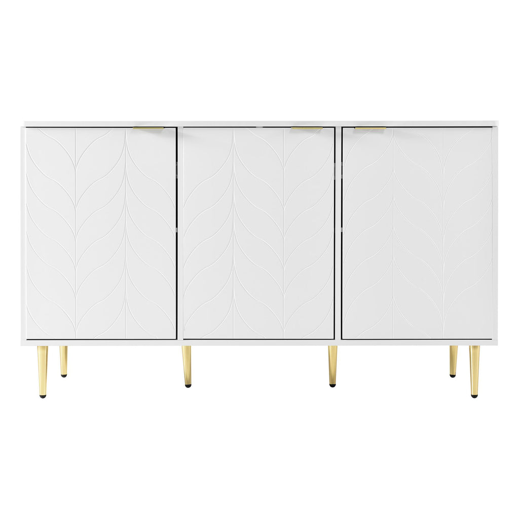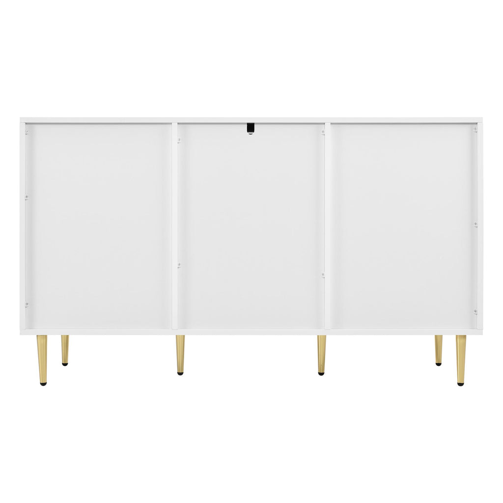 Elevate your living space with this modern dining room cabinet, featuring gilded legs and handles for a touch of luxury. Crafted from durable MDF and finished in a sleek white lacquer, this cabinet boasts rounded corners and a robust painted surface that resists scratches and moisture. With two layers and six compartments, it offers ample storage for any room, whether it's the bedroom, living room, or bathroom. The electro-chrome plated gold handles add a sophisticated flair, while the anti-tip device ensures safety, making it a stylish and practical addition to your home.