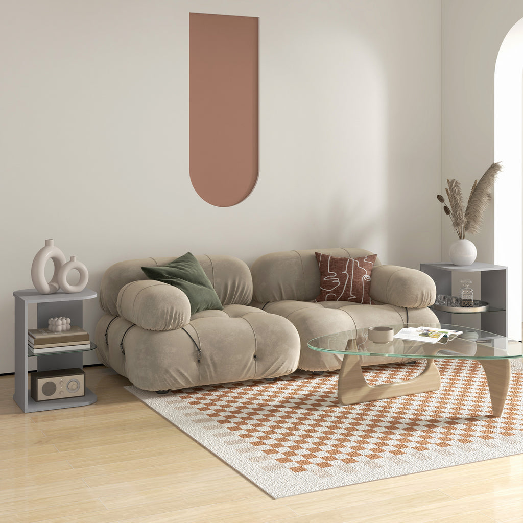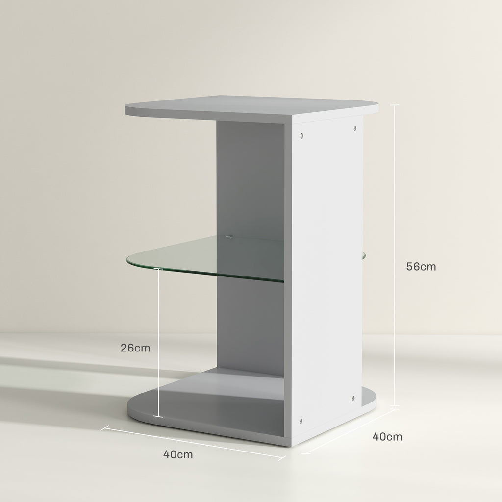 Curved, simple sophistication for the home and office starts here. This corner table, is a perfect way to update your space whilst keeping it tidy. Made from particle board for durability, it's fitted with a middle glass shelf for three storage levels. Corner design means it can fit in even those awkward spaces. How about using it for a nightstand? Your modern home starts here.