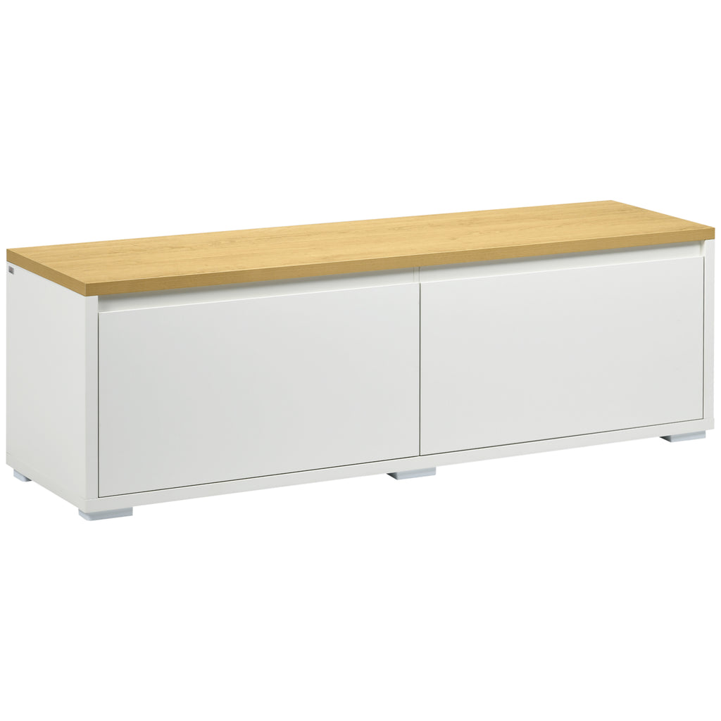 Your TV, given prime place - and in total style too! Say hello to this media tv unit. The clean white body pairs with the wood-effect top for a modern look - looks great in plenty of different home styles. It comes with pull-down door, which reveals two compartments: plenty of storage for keeping things out of sight - making your space clean and tidy. Gas struts ensure the door opens and closes smoothly. Complete with handy cable management holes. TV bench suitable for screens up to 65".