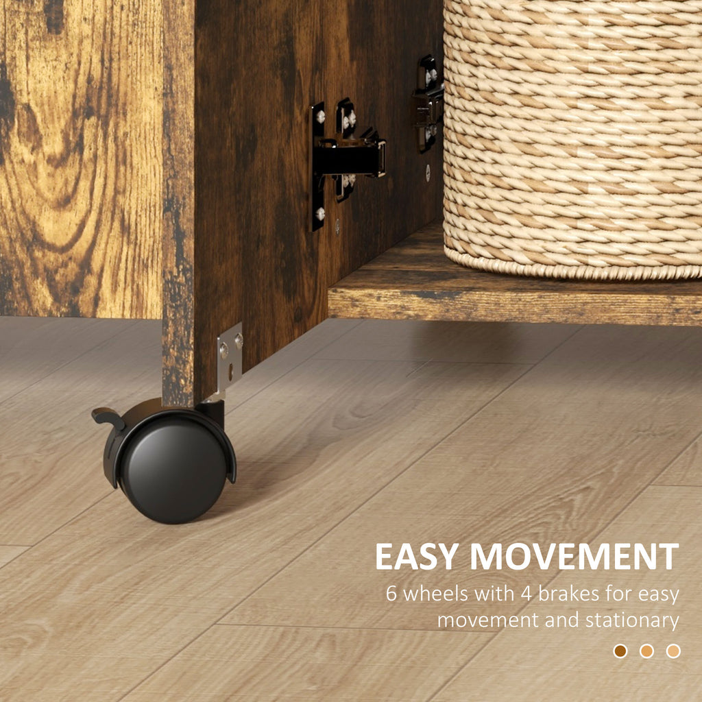 A small dining table which expands - look to this expanding drop leaf piece for more compact spaces. Both ends are fitted with lift-up tabletops - sitting between four and six people: great for when you require extra dining space. It comes with two drawers, a shelf and a cabinet which offers handy storage for kitchenware and more. Complete with six wheels to move easily (four with brakes).