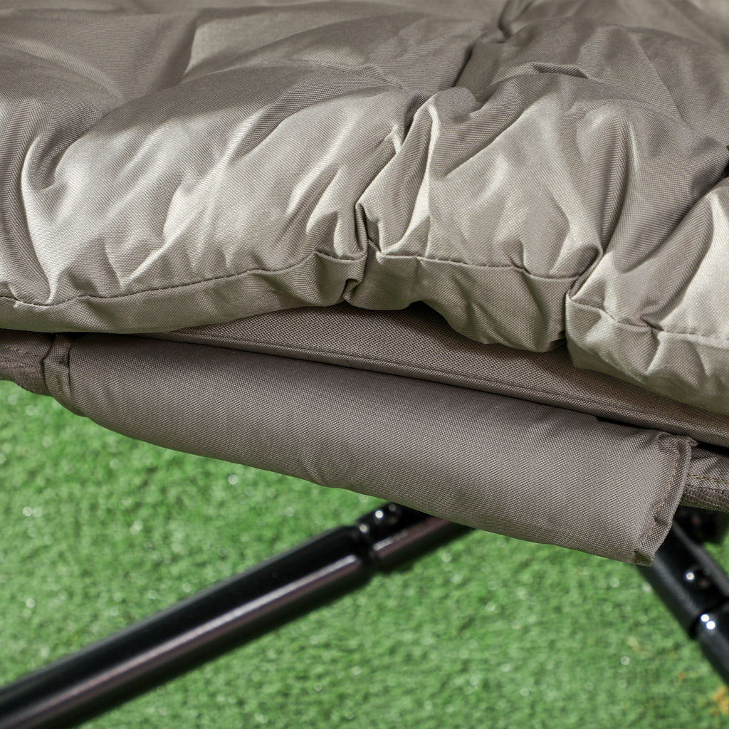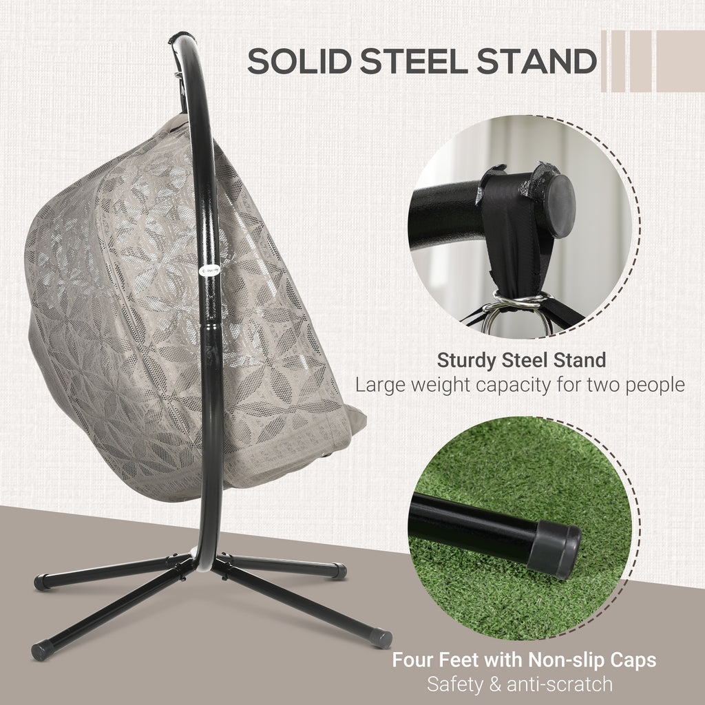 Make the most of your lazy days with this hanging egg chair . The curved back, spacious seat and soft padded cushion make this a super comfortable piece to relax in whenever you want. Made from steel, the frame is strong, with a four long-legged base to help keep the balance. The seat basket can be taken off the frame and folded up - so when the sunny season is over, or you want to change up your outdoor space, you can store this egg chair away easily.