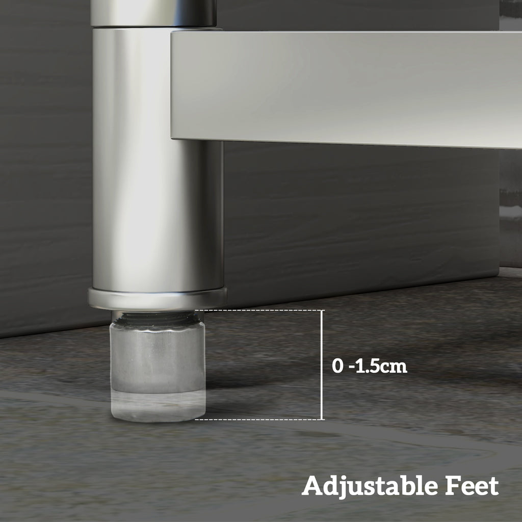 Whether for your garden, garage, laundry room, or outdoor kitchen, 's stainless steel utility sink delivers exceptional performance indoors or out. Keep your essentials organised and close at hand with the practical lower storage shelves. Offering both hot and cold water options, this sleek, portable catering sink is a must-have for any space.