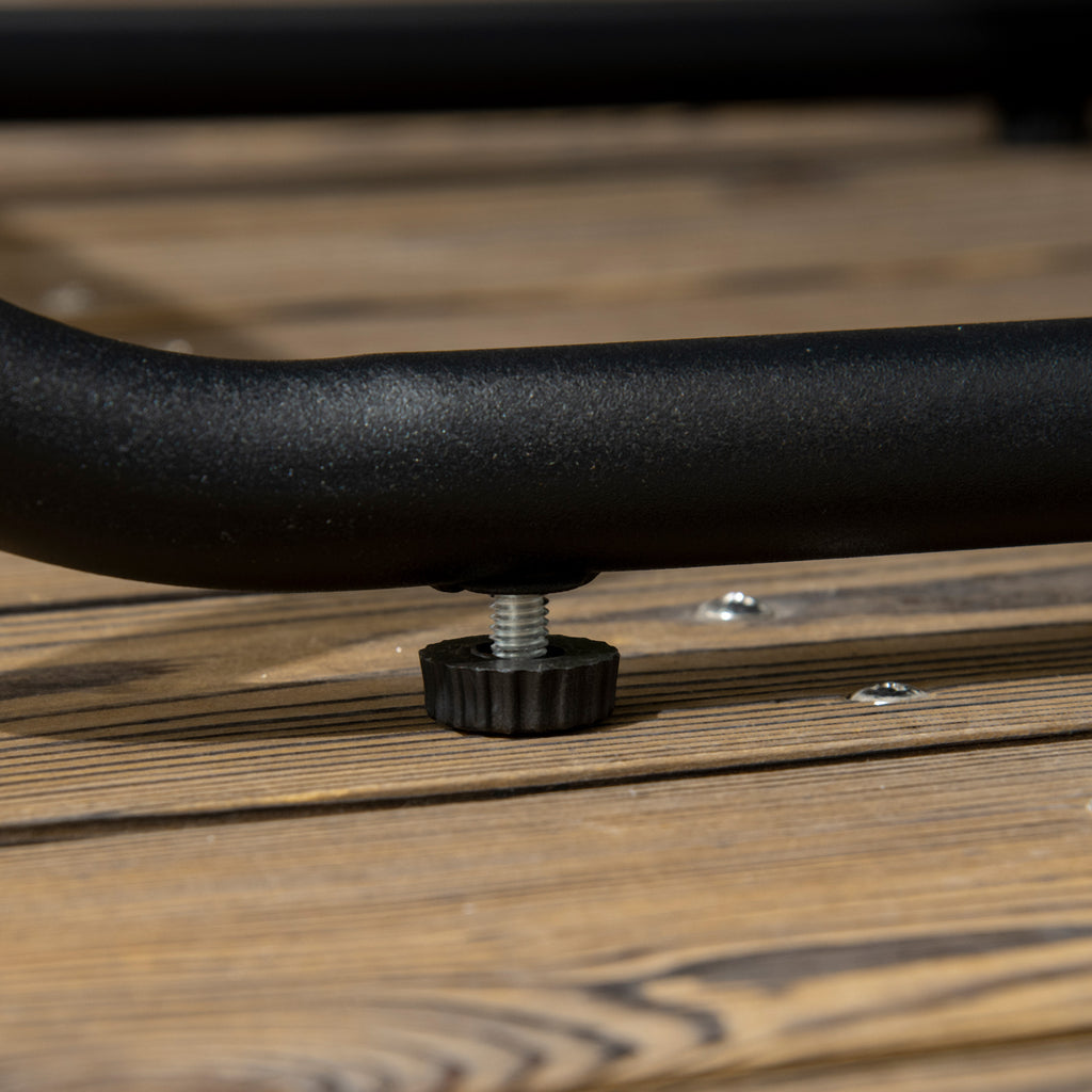 An inviting setting for all ideal for garden and other outdoor areas. Solid metal for a strong frame, with plastic wicker for the chairs to offer double the durability; the fringed design for a cool look. The wood grain plastic tabletop is tough and easy to clean. Both chairs and stools come with padded cushions for comfort. When done, you can tuck the chairs and stools under the table, so they don't get in the way.