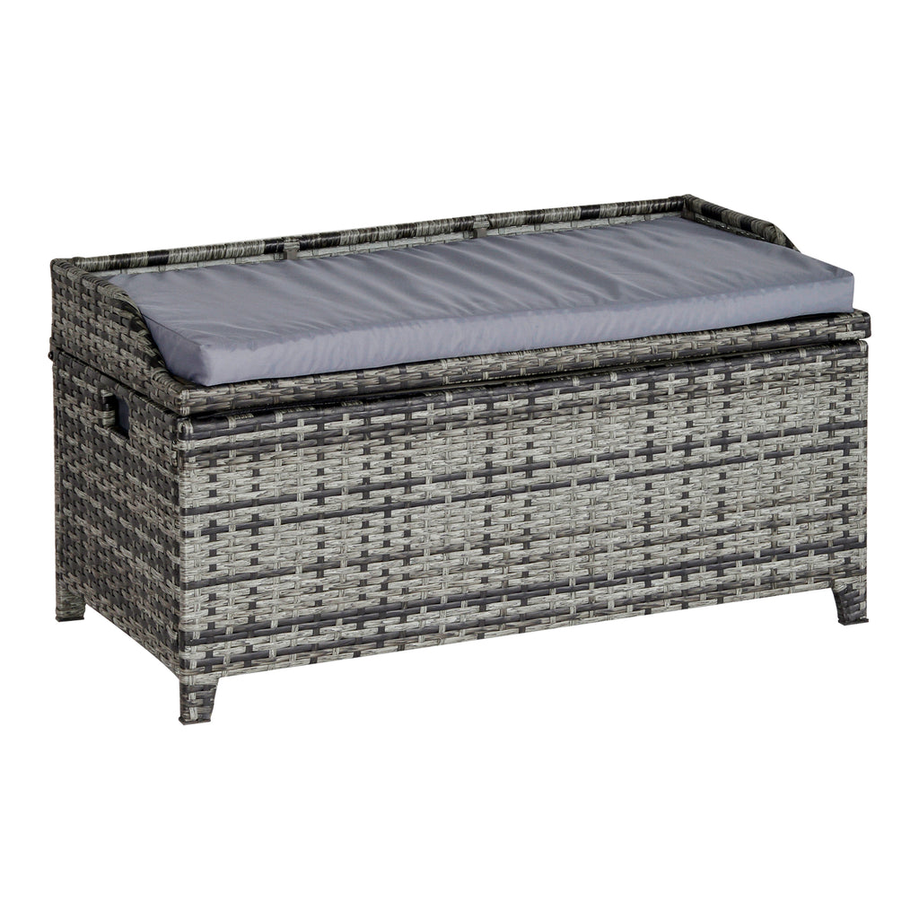 This rattan storage box with seating for two persons is a great addition to your outdoor living. Made using an aluminum frame and covered with PE rattan, it will not rust and fade. With seating for 2 and a storage box underneath to keep the the seating cushion when not in use. Use the storage area to keep magazine and books handy, while enjoying the outdoors.