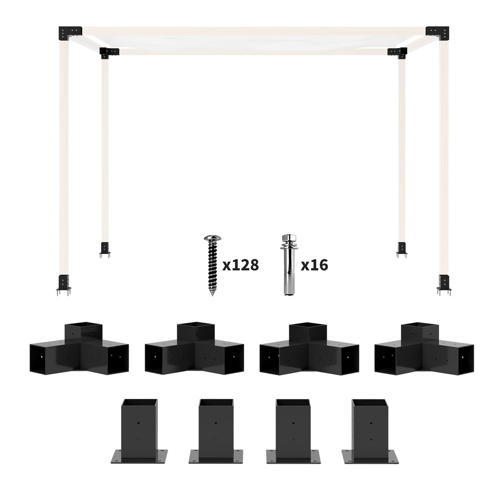 Transform your outdoor space with the pergola post brackets kit! This versatile DIY pergola kit includes essential brackets to create a gazebo or pergola. Featuring precision-welded, powder-coated metal frames for enhanced durability and resistance against deformation. Comes complete with expansion screws for easy installation on terraces, lawns, or courtyards.
