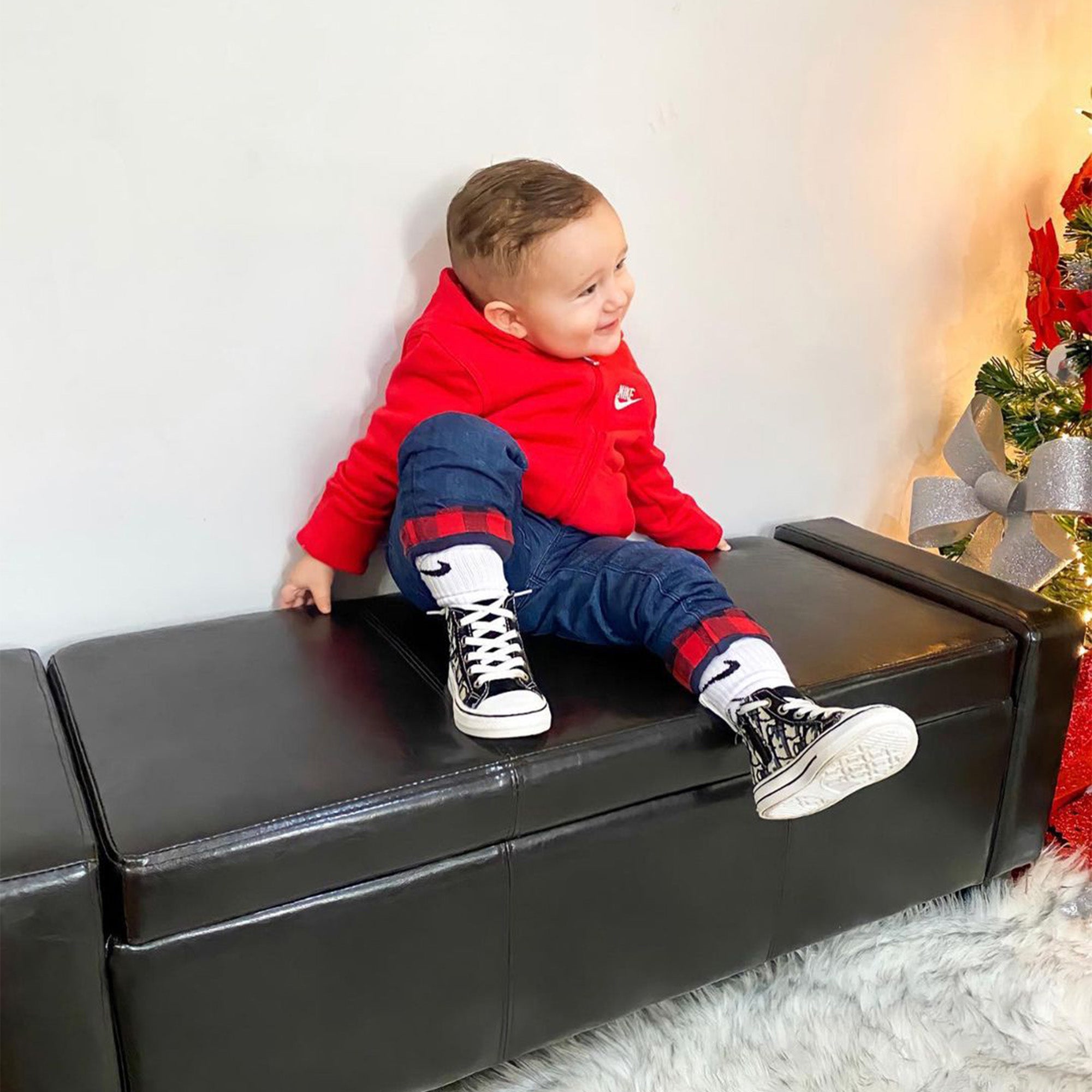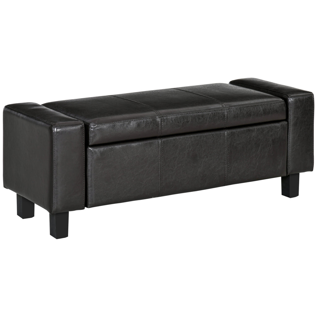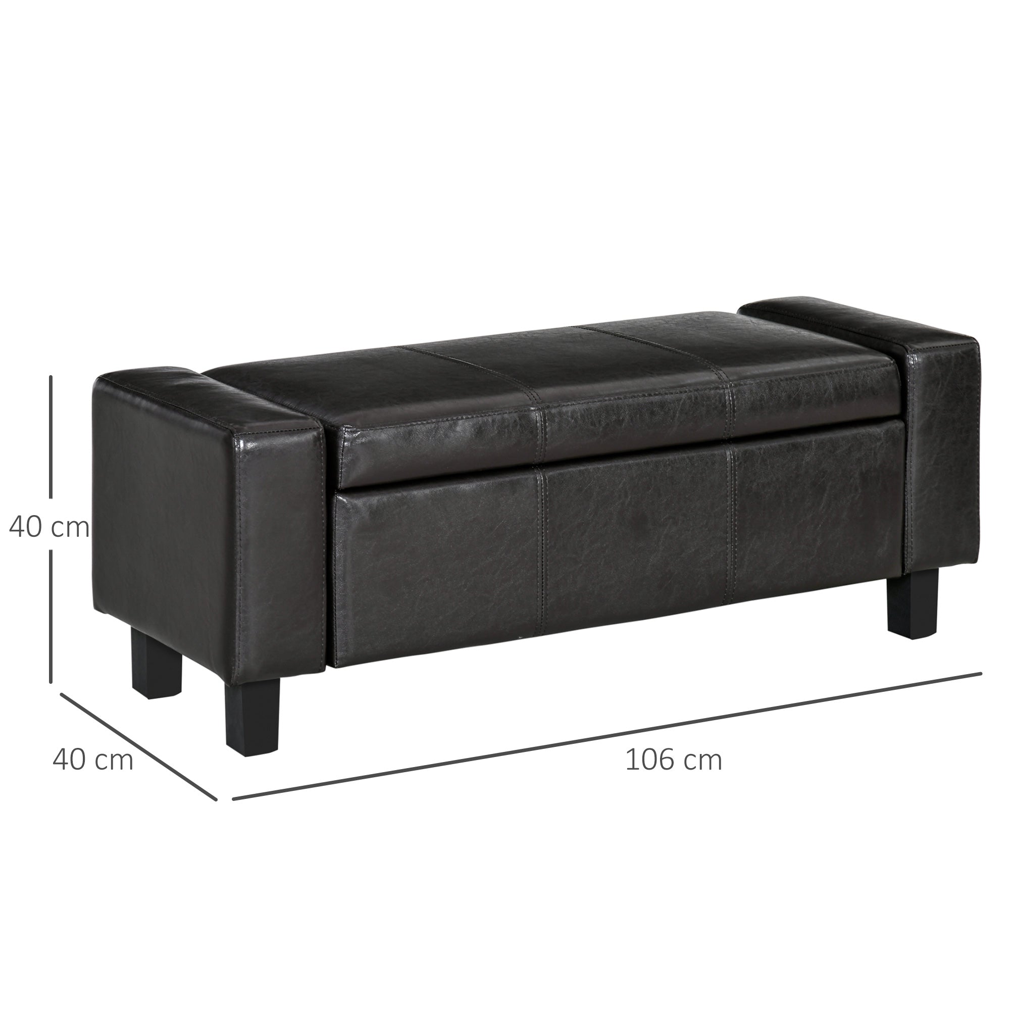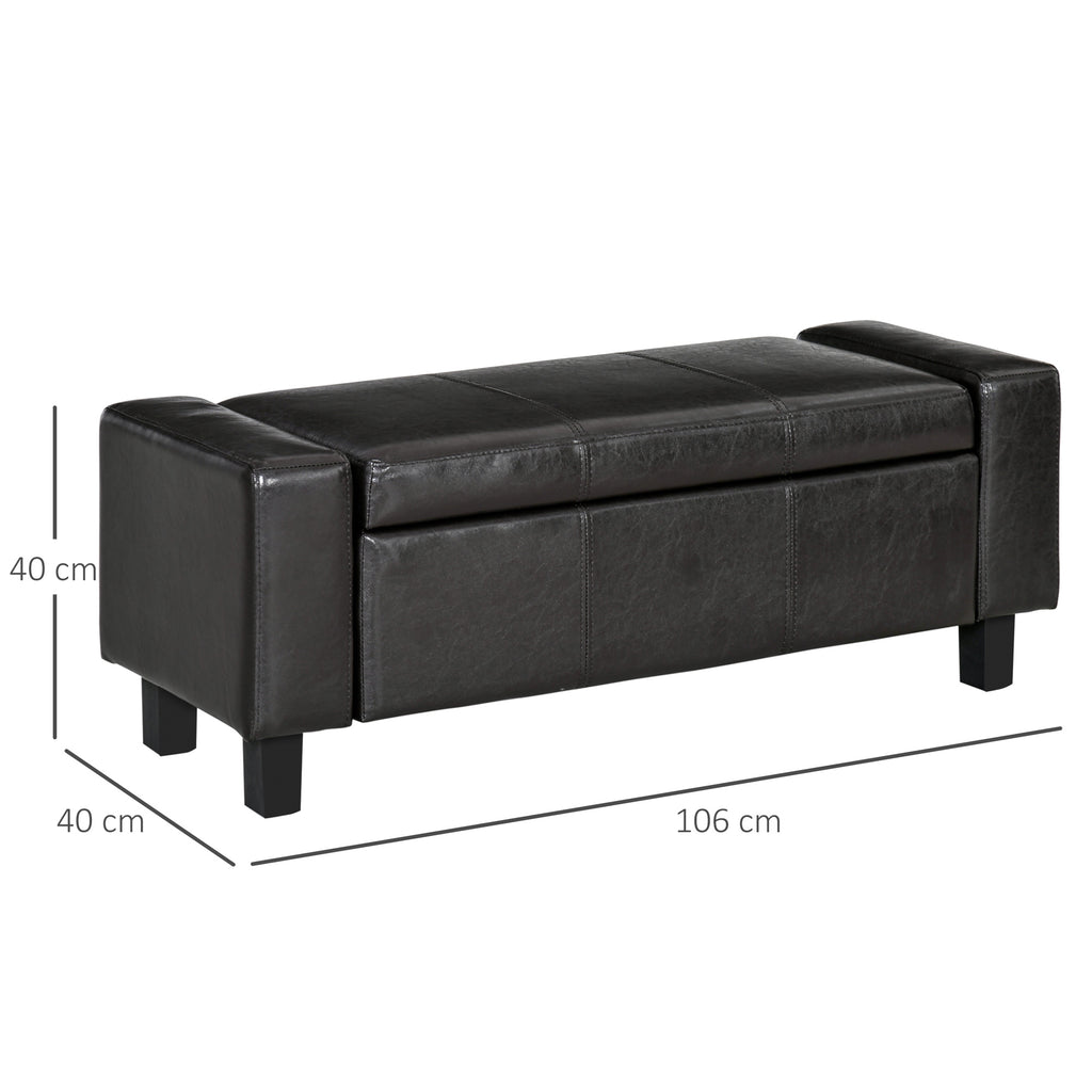 Keep your home tidy and organised with this ottoman storage box A simple design, it will bode well in your home and home office, with its sleek PU leather upholstery and its modern boxy shape. Using MDF for the frame to ensure the sturdiness. A flip lip reveals a 20x79cm compartment, which gives you a moderate amount of storage room. This storage ottoman is also equipped with four legs for balance. The perfect way to keep your home decluttered with ease.