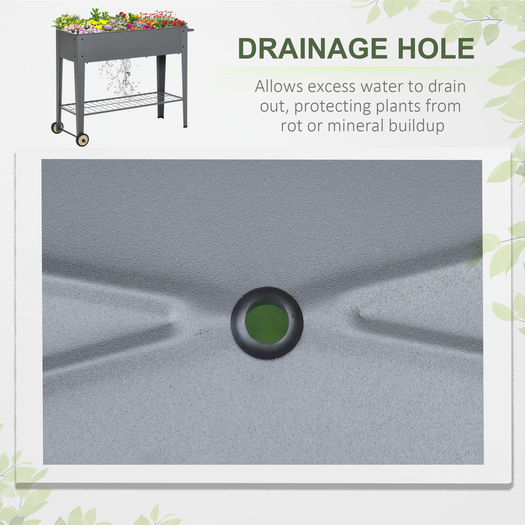 Raised Garden Bed with Wheels, Mobile Planter Flower Box with Bottom Shelf Grey, 104 x 39 x 80cm