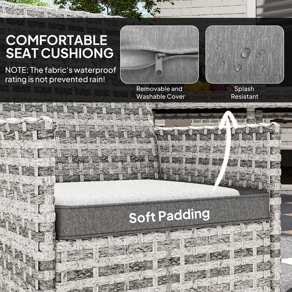 Rattan Garden Furniture Set, Outdoor Dining Table and Chairs 4 Seater with Cushions, Square Tempered Glass Top, 4 Armchairs, for Balcony, Terrace, Conservatory, Mixed-Grey