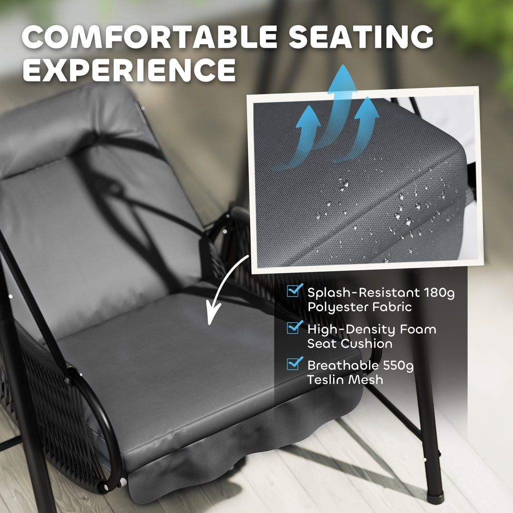 Discover the charm of the hanging garden chair, where style meets comfort. Sink into the high-density sponge cushions for unrivalled softness, or enjoy the breathable 550 g teslin mesh on warmer days. Admire the UV-resistant PE rattan wrapped armrests that add a unique flair, all while relaxing on a robust steel frame designed for stability in your favourite garden nook.