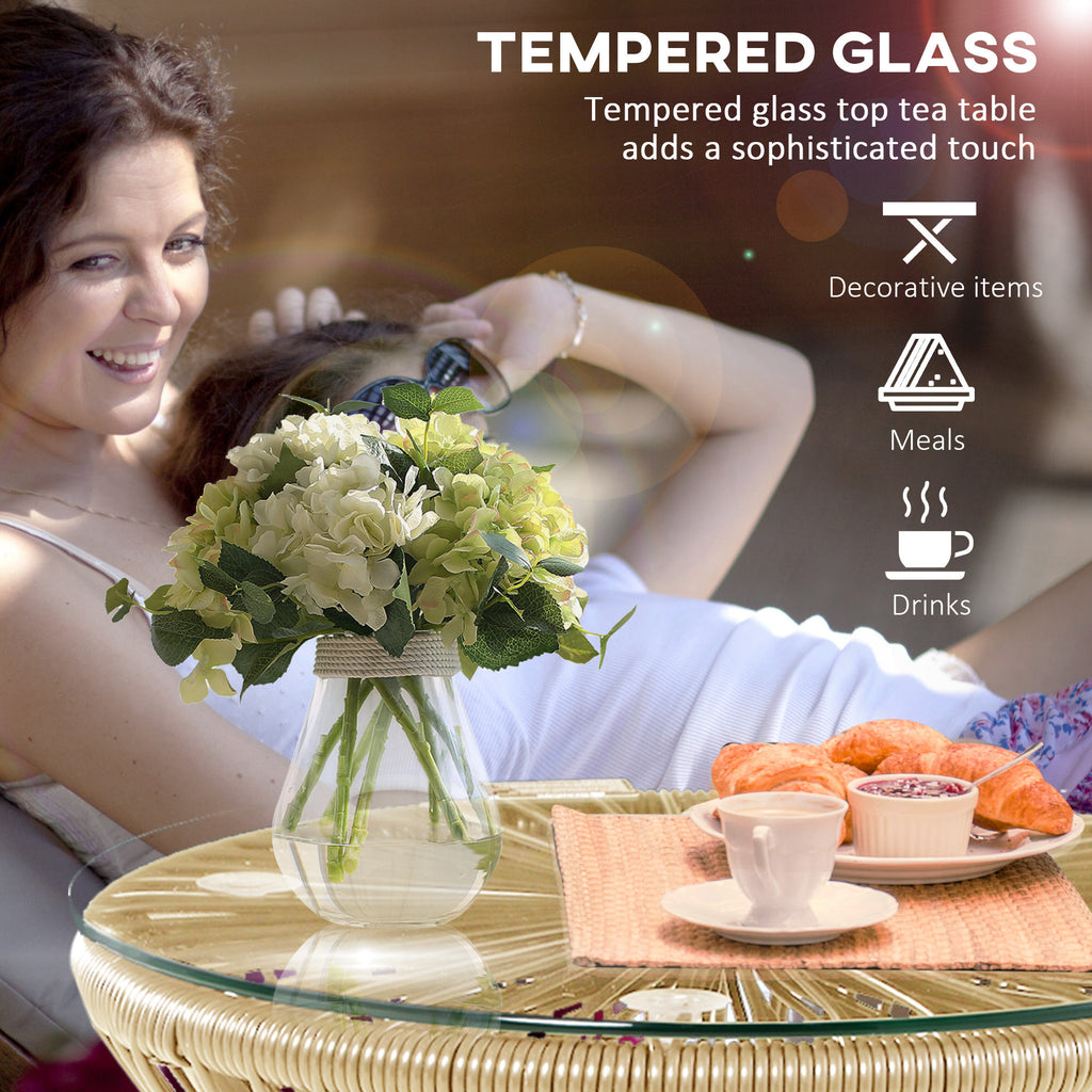 This garden table is twist on your standard rattan designs: coming in a wicker string design, this is the great update for your outdoors. A powder coated metal frame means a strong core, with the large base ensuring balance. Comes with a 5mm tempered glass tabletop for a sleek and safe holding place.