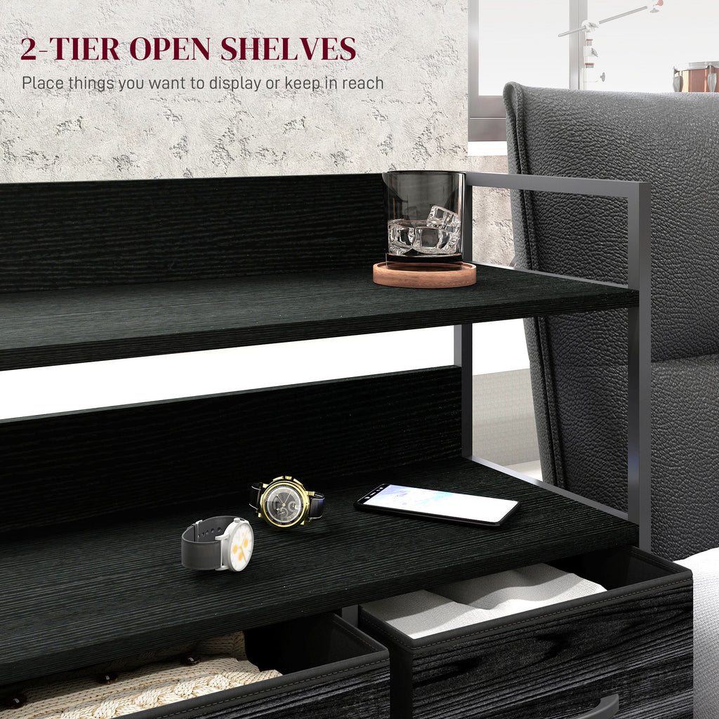 A spacious and simple approach to clothes storage, with this chest of drawers. It comes in industrial and rustic wood-effect design, a minimal and versatile look: it's great for plenty of different interior styles. This dresser comes with five drawers for storing and organising various garments. A powder coated steel frame for a strong core, finished with adjustable feet for balance.