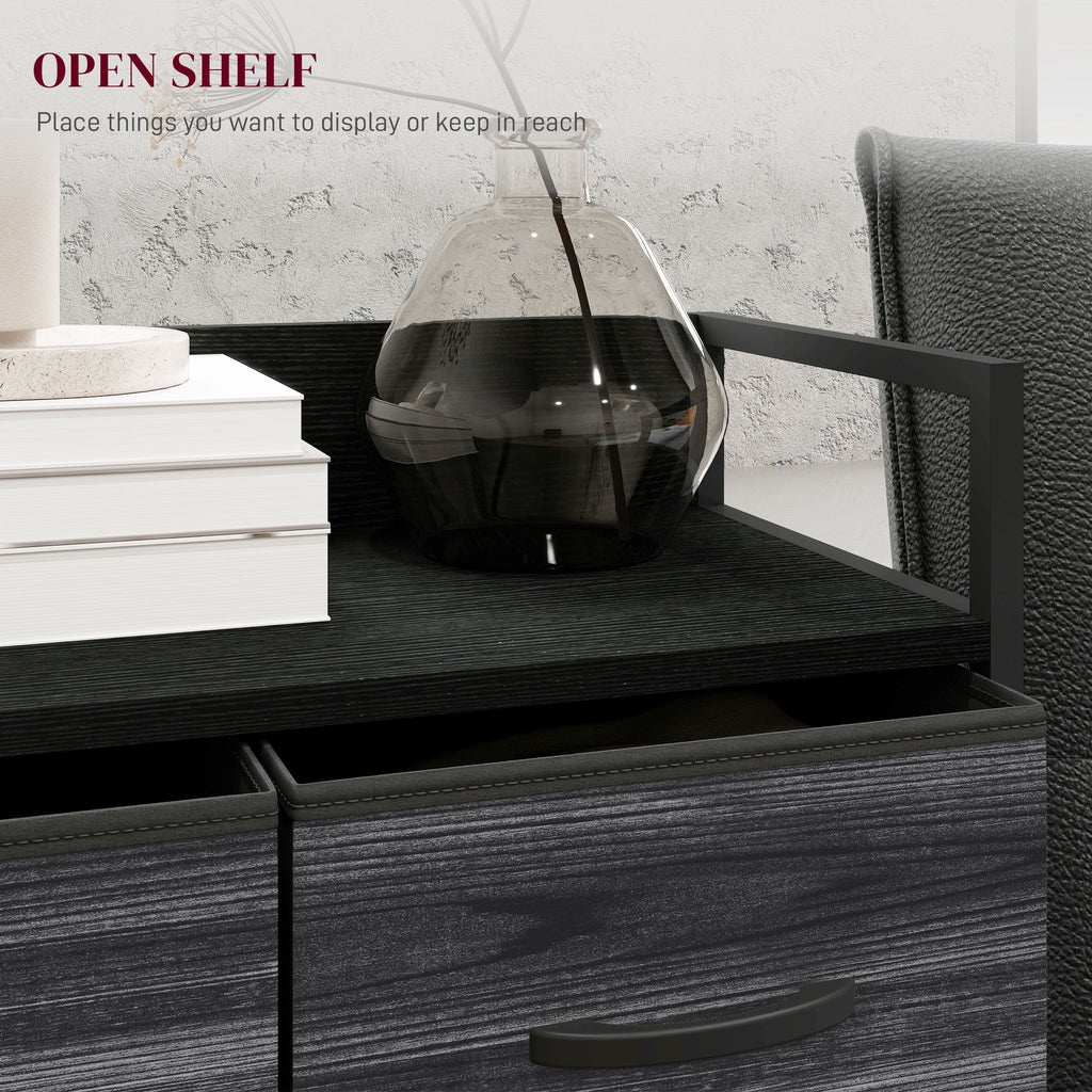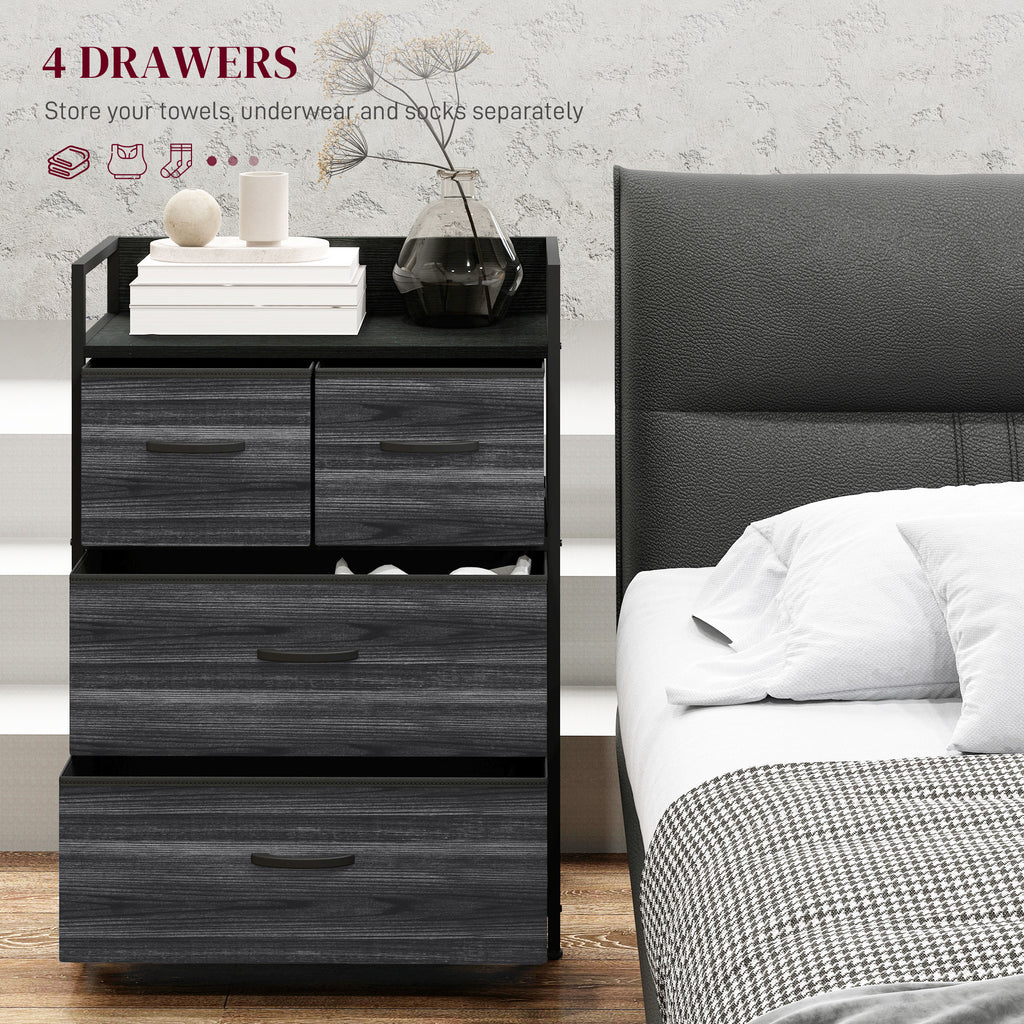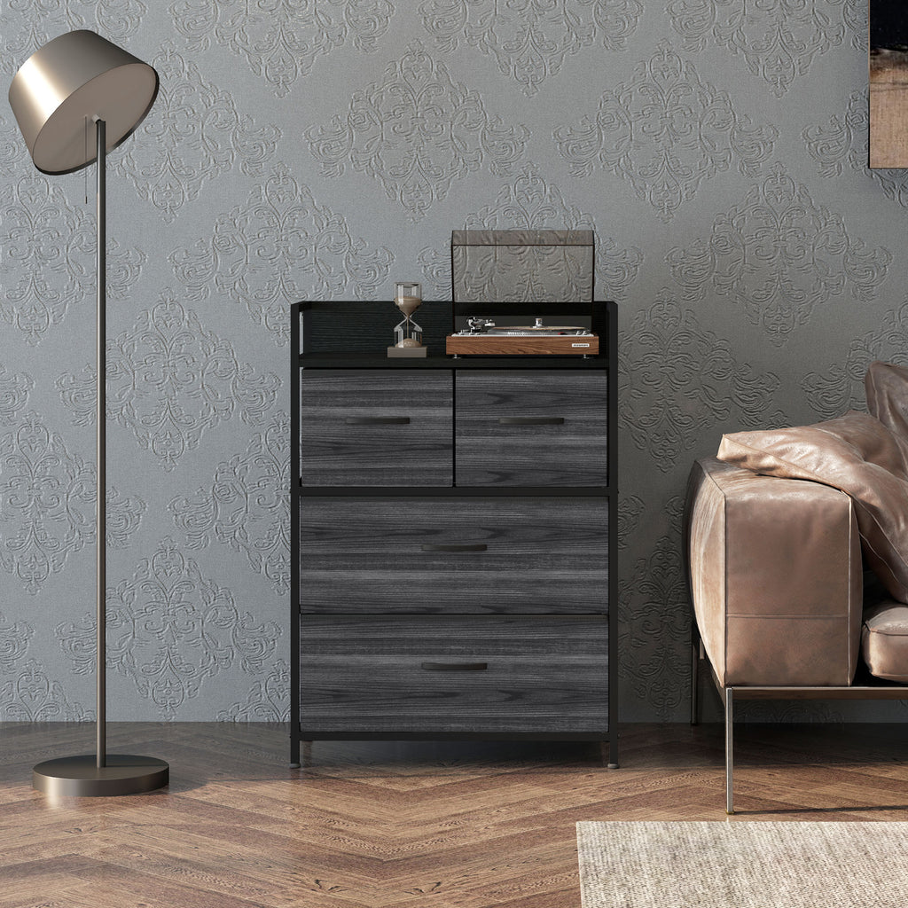 A spacious and simple approach to clothes storage, with this chest of drawers. It comes in industrial and rustic wood-effect design, a minimal and versatile look: it's great for plenty of different interior styles. This dresser comes with four drawers for storing and organising various garments. A powder coated steel frame for a strong core, finished with adjustable feet for balance.