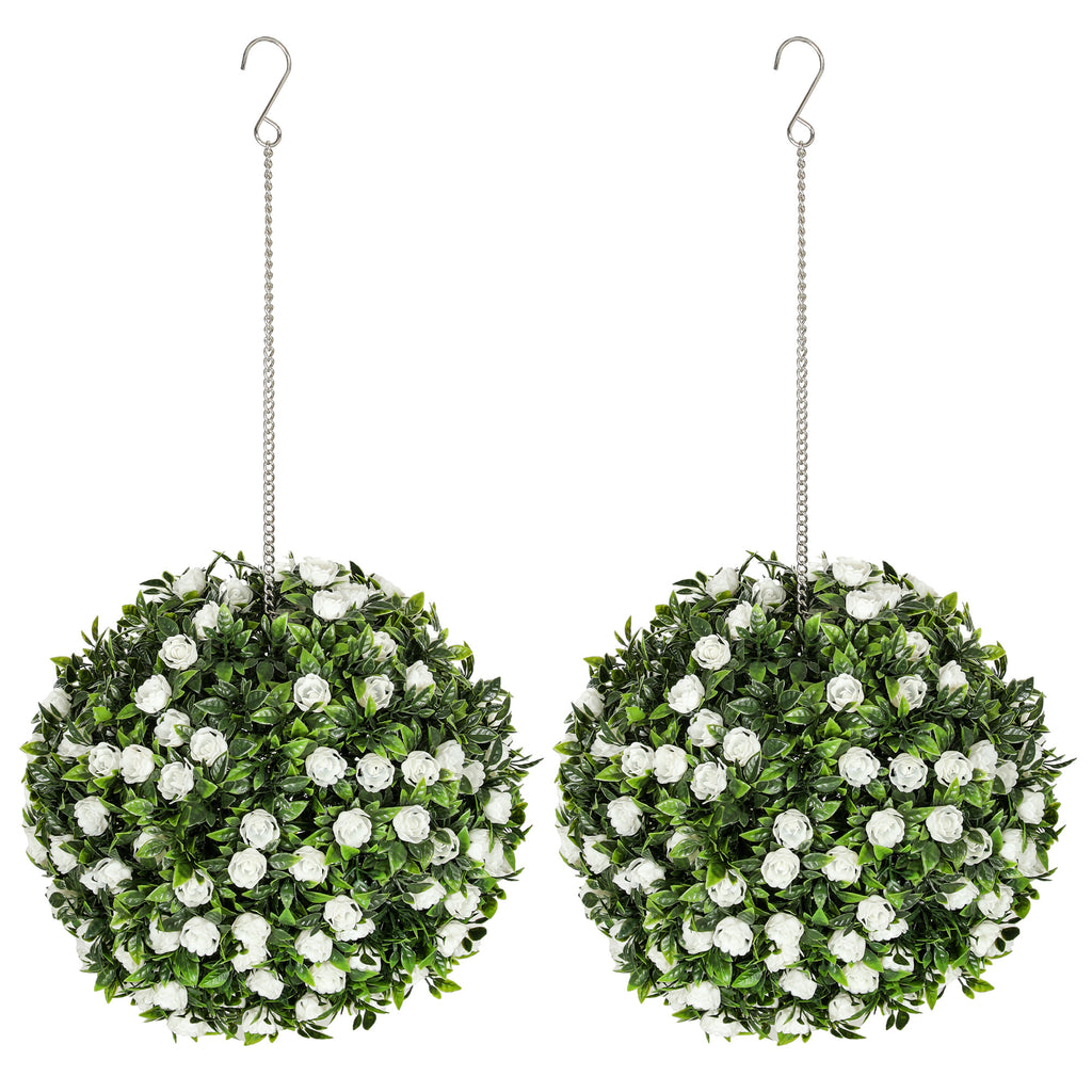 Set of 2 Decorative Artificial Plants, UV-protected Artificial Plant Topiary Rose Balls, Fake Plants for Home Indoor outdoor Decor, 28cm, White
