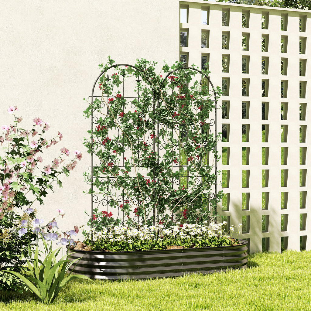 Transform your garden into an enchanting oasis with the metal trellis. The two trellises, adorned with delicate scrollwork motifs, offer lots of space for climbing plants and double as charming privacy panels. Crafted from weather-resistant, powder-coated metal, they promise lasting support and easy ground insertion. The plant supports for garden are great for gardeners who wish to add a touch of elegance while providing practical plant supports.