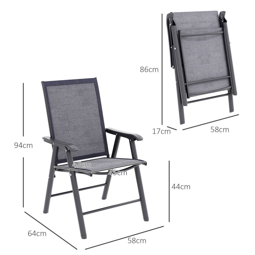 Never be stuck for a seat again, whether you're home or away, with this set of four folding chairs. Using metal with a powder coating for extra strength and durability, the frame is crafted into a classic outdoor chair style for simplicity, with texteline seats that allow your skin to breathe-great for the hotter days. With a tall, slightly tilted back, wide seat and mid-rise armrests, each seat will support you whilst keeping you comfortable for long periods of time.