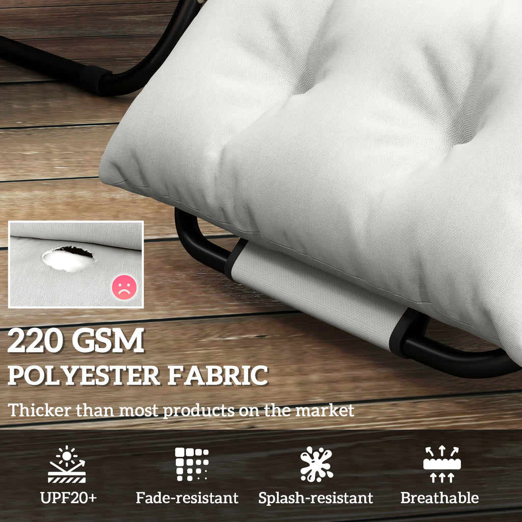 Upgrade and relax on your outdoor recliner, with this sun lounger cushion set. Both cushions are filled with high-resilience PP foam - long-lasting comfort, even during extended sitting. The polyester fabric covers are durable, so they are made to last. Both cushions come with six tie fastenings to secure in place.
