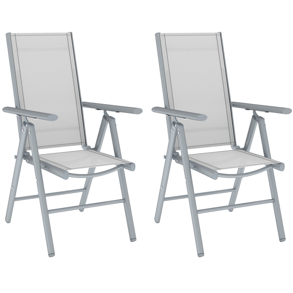 This set of two garden chairs are fitted with mesh fabric seats, with high backs: keep comfortable and supported. The aluminium frames are strong and supportive; resistant to rust and corrosion - suitable for outdoor use. Foldable - easy to carry and store.