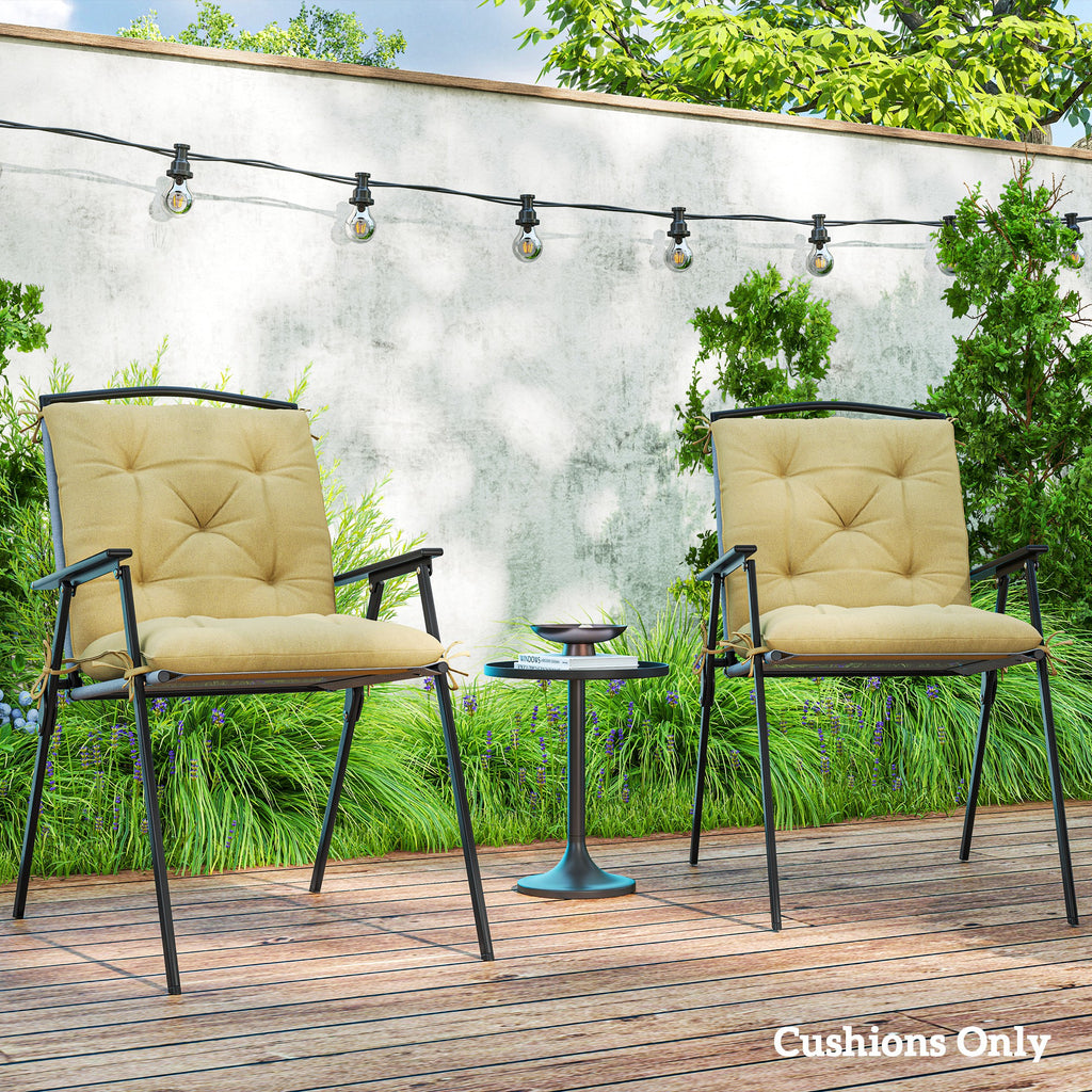 Refresh your single-seat chairs with these two replacement cushions from . Each have a polyester fabric cover: smooth on the skin, durable and stain resistant - they're easy to care for. Plush cotton filling for comfort. The seat and back combined design keeps your upper and lower body comfortable. Completed with tie fastenings to hold into place.