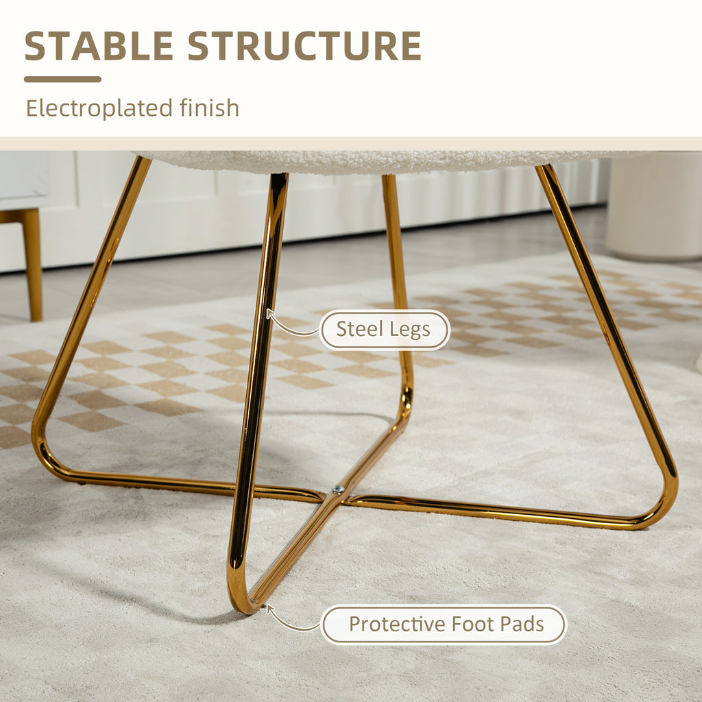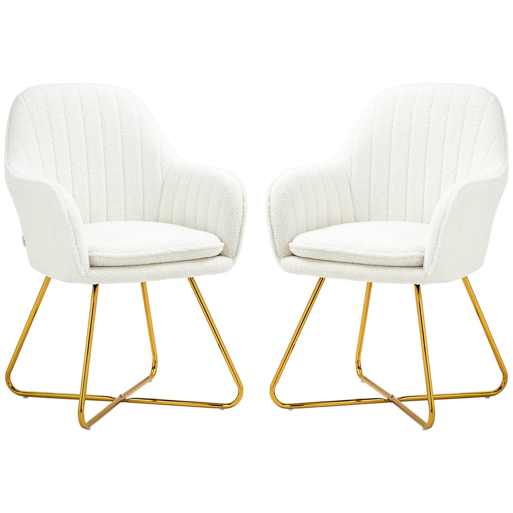 Double the plush comfort with this dining chair set. Sponge seats for comfort, wrapped in sherpa fleece upholstery for a soft finish. Each works perfectly as a reading chair, vanity chair or lounge chair - they are versatile! Complete with a metal base for strong support.
