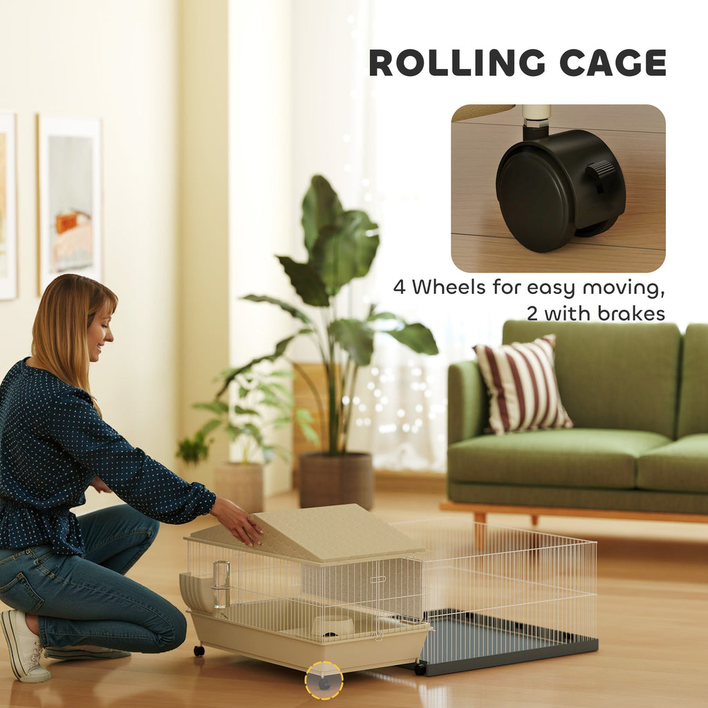 Discover the joy of expansive living for your little friend with the small animal cage. This cleverly designed guinea pig cage features an attachable playpen to enlarge their habitat and a cosy hideaway paired with a balcony for dining. The included hay feeder, water bottle and feeding bowl ensure your pet's comfort in this versatile small pet cage.