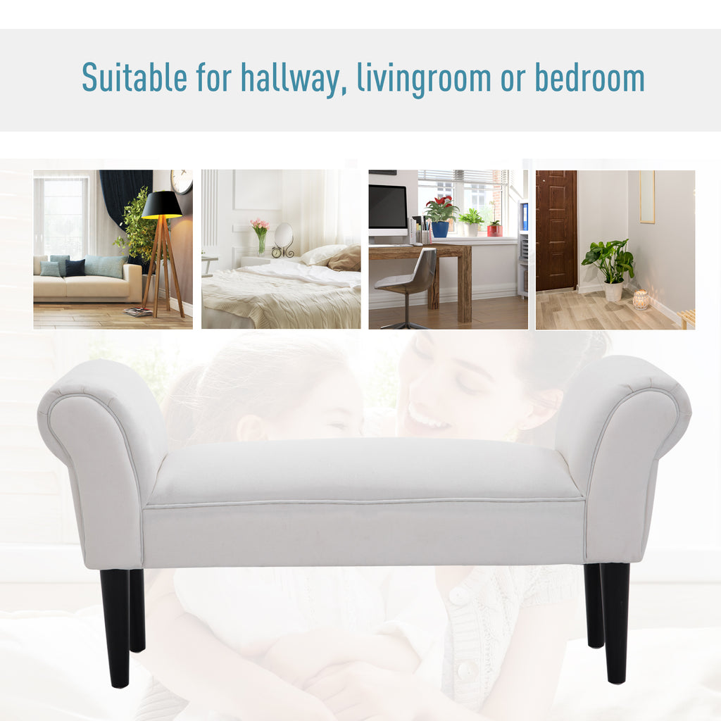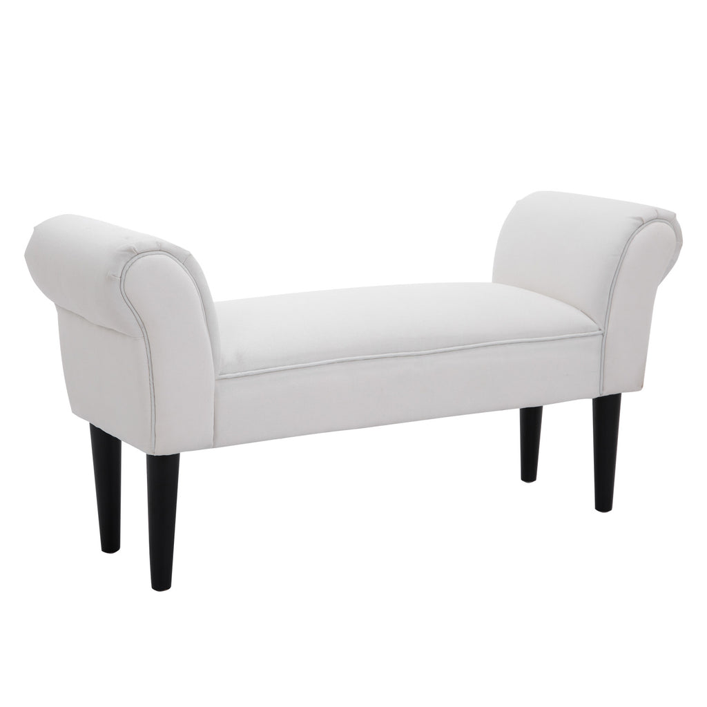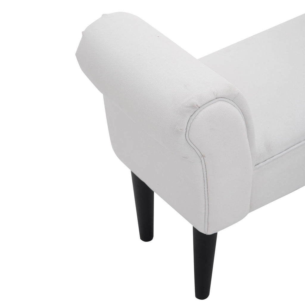 Reinvent your bedroom with this small ottoman bench It's made for adding beautiful detail to any bedroom, living room or other space. It's filled with foam for comfort and wrapped in soft canvas fabric, making it soft to the touch. The dark coloured legs are made from wood, keeping it balanced and stable when in use. With the rolled sides on the end, the overall look is elegant, and will help prevent you from slipping off the edge. An easy way to enhance the home instantly. Note: Please check the dimensions on this ottoman as it is smaller than expected.