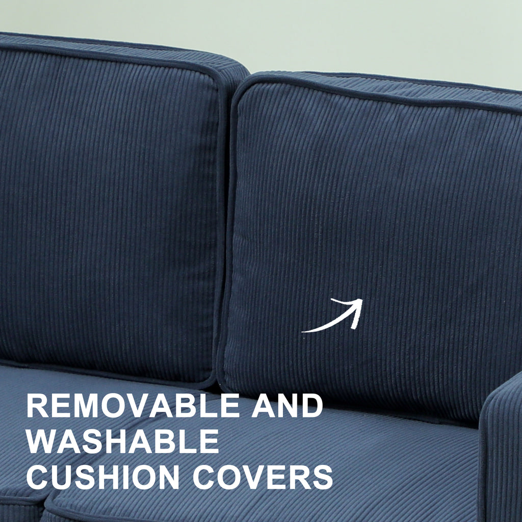 Style and storage, in sofa from with this piece. Lift the seat to reveal a 95 x 46.5cm compartment: suitable for blankets, pillows, books, or any other items you want to easy access to. Upholstered in forever-stylish corduroy, this lounge sofa is filled with high-density sponge for firm comfort. Complete with wooden legs for plenty of stable support.