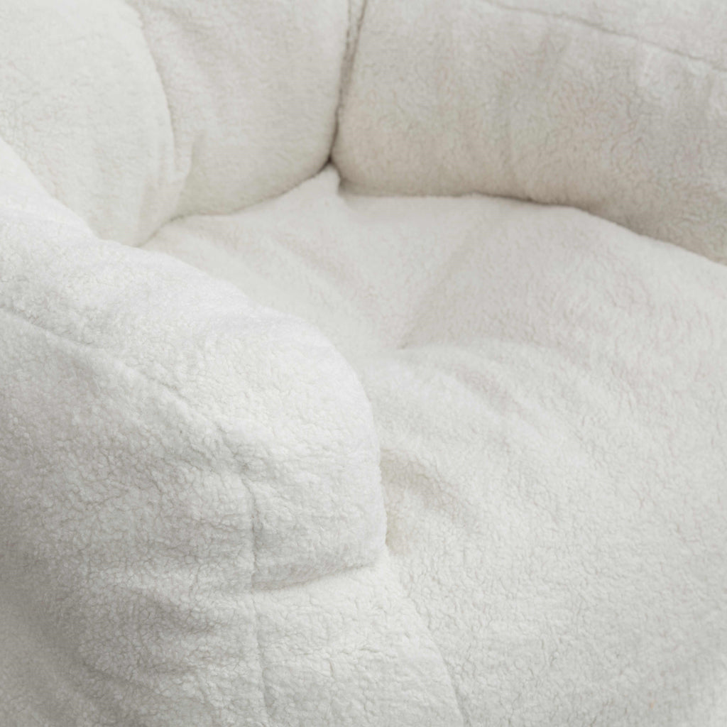 Experience ultimate comfort with our Soft Tufted Foam Bean Bag Chair in Ivory White. Crafted from luxurious teddy fabric and filled with memory sponge pieces, this chair offers an ergonomic backrest for superior support. Measuring 100L x 94W x 70H cm and weighing 13kg, it arrives fully assembled and ready to use. Ideal for any indoor space, from living rooms to bedrooms, this bean bag chair is perfect for all ages and supports up to 110kg.
