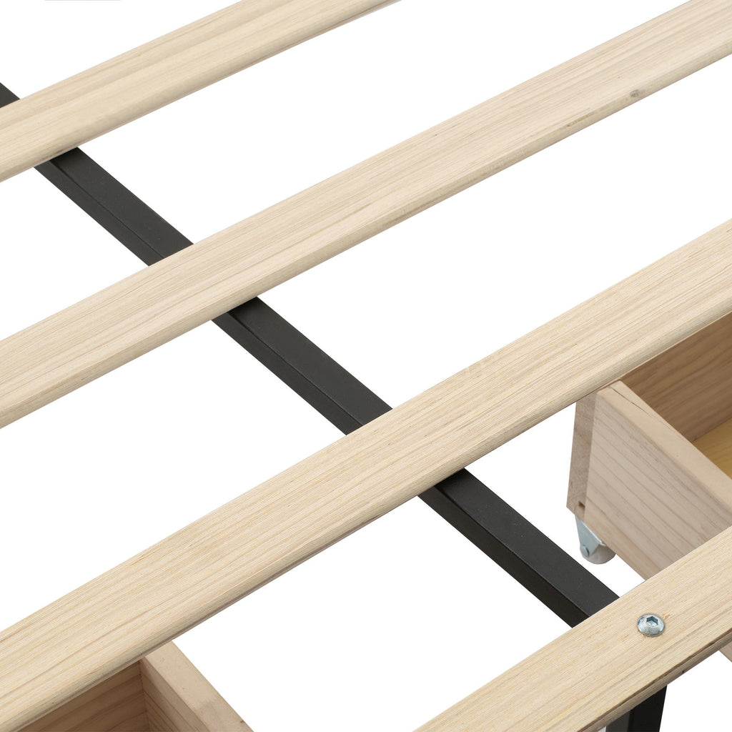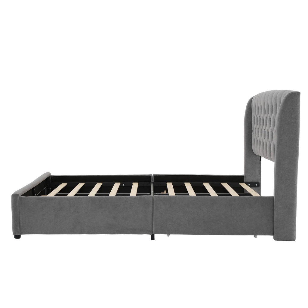 Upholstered Storage Bed with 4 Drawers and Soft Backrest - Gray