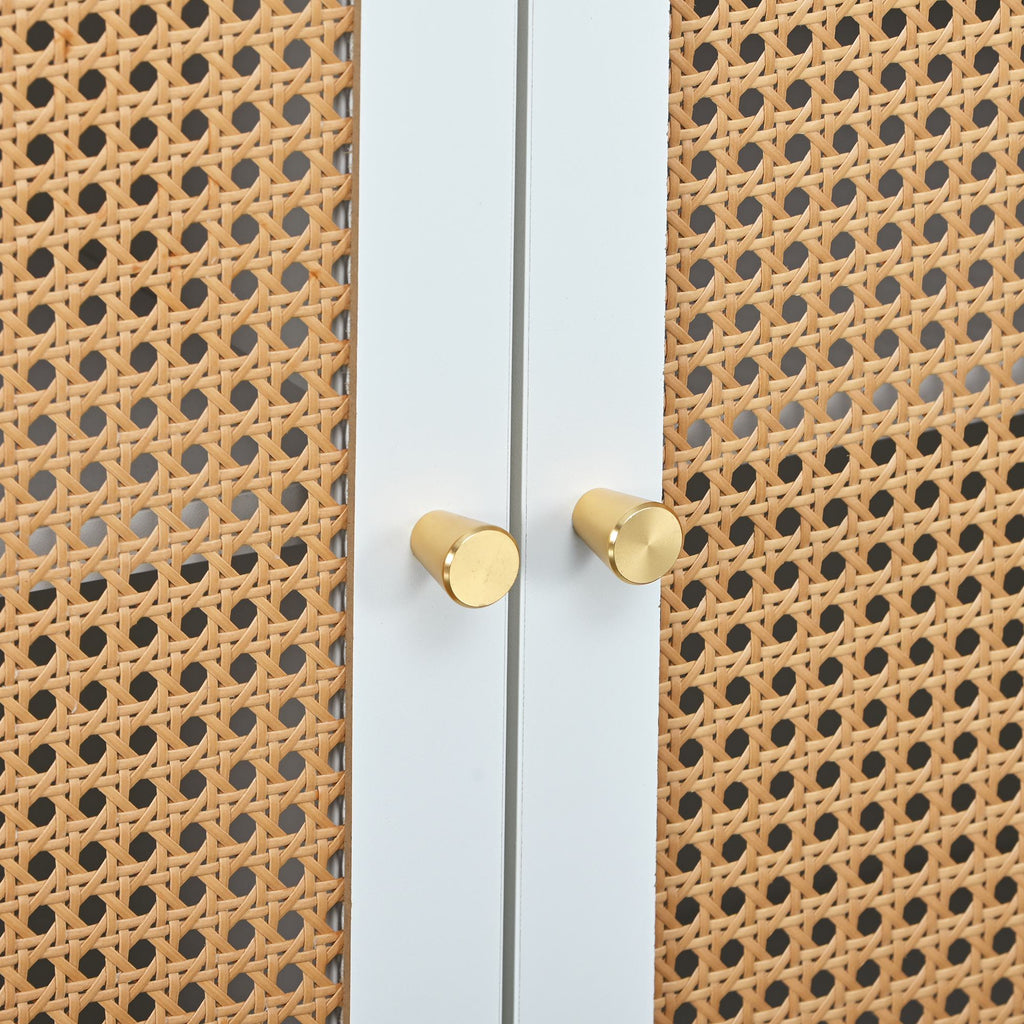 Versatile Rattan Sideboard with 3 Doors and Metal Handles, Storage Cabinet for Living Room and Office, 130L x 40W x 76H cm, White