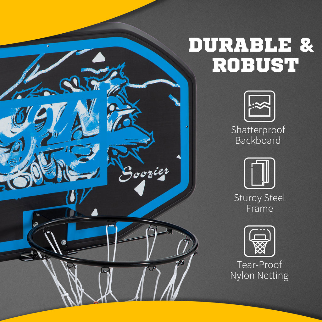 Wall Mounted Basketball Hoop, Mini Basketball Hoop and Backboard for Kids and Adults, Outdoors and Indoors Door & Wall Use, Blue and White
