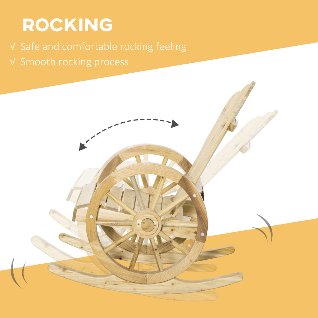 If you're looking to give your garden something completely different and unique, why not opt for this garden rocking chair wooden from ? Using solid fir wood for strength and durability, the patio rocking chair is crafted into a design which mimics an old rocking chair, with a smoothly curved base to sway back and forwards, a large decorative wheel on each side and a high back and wide seat for comfort. The rocking garden chair is a piece to charm and intrigue anyone who comes over to visit.