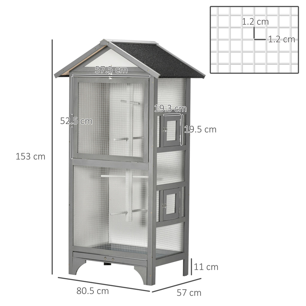 A spacious home for your pets, thanks to this bird cage from . Its vertical design offers plenty of room to move and stretch their wings, whilst the four perches let them choose where they'd like to relax. The powder-coated metal grids help with ventilation and allows you to keep watch. Perfect for outside, the asphalt roof is weather-resistant, whilst the raised floor stops moisture seeping through. The doors are lockable – they'll be safe in their home, even when you're not around.