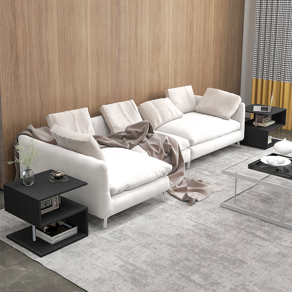 Wooden S Shape Cube Coffee Table 2 Tier Storage Shelves Organizer Office Bookcase Living Room End Desk Stand Display Set of 2 (Black)