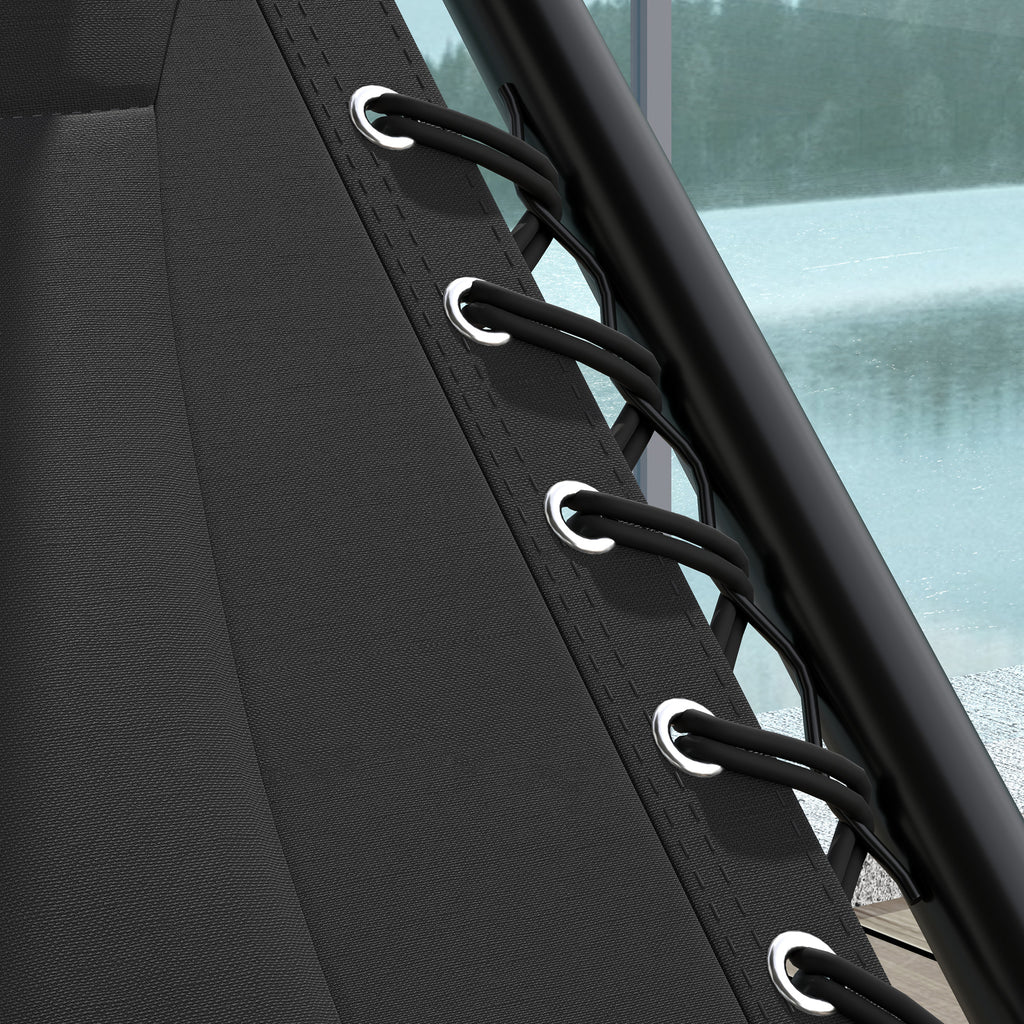 Let the day's stress drift away with this zero-gravity chair set from . Its comfortable design evenly distributes your body weight to reduce back pressure and provides superior lumbar support as you sit. This piece of outdoor furniture allows you to relax while fully reclined to the most comfortable 'zero-gravity' position.